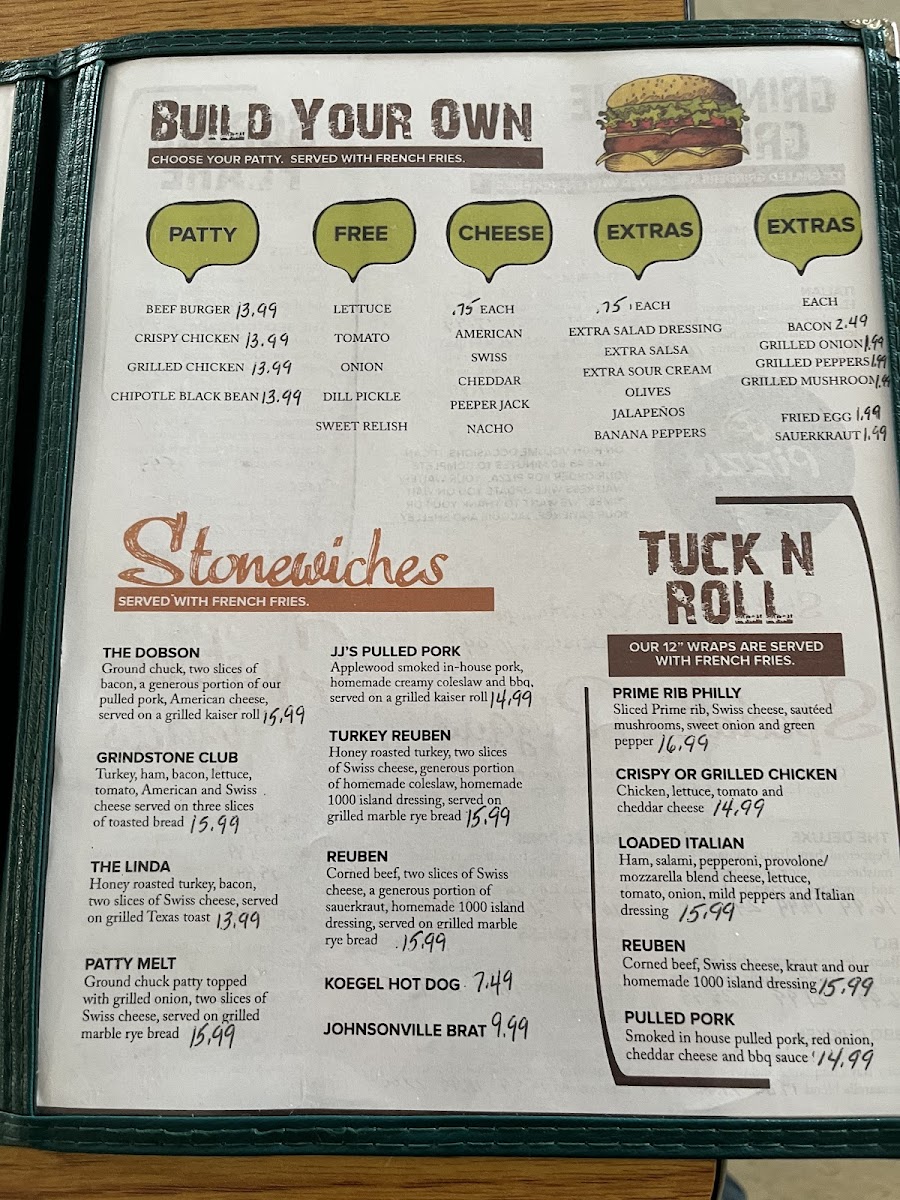 The menu features hearty options like build-your-own burgers and a variety of pizzas, including classic pepperoni and veggie choices, along with crowd-pleasers such as a Reuben sandwich and a satisfying hot turkey sandwich. Lighter bites and shareable starters, like parmesan bread sticks and crispy fried pickle chips, complement the main dishes well.